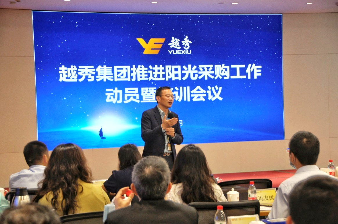10月15日下午,凯发天生一触即发集团在广州国际金融中心58楼大会议室举行推进阳光采购工作动员暨培训会议。集团总法律顾问、董事会秘书贺玉平主持会议,集团党委委员、纪委书记、监察专员潘泽勇作动员讲话,集团首席财务官陈静出席会议。广州交易所集团副总经理殷亚婕、广州产交所常务副总经理胡斌、广州物流交易所副总经理杨文杰以及阳光采购平台有关工作人员应邀参加会议。集团总部各部门负责人、各板块采购工作分管领导及采购部门负责人、相关采购管理人员近70人在主会场参会,集团总部相关员工、各板块下属企业采购管理人员及采购工作对接人员100余人通过线上参会。